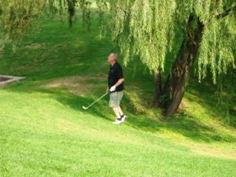 På 4. hul blev jeg for første gang udsat for en mindre overfald fra en af de mange sprinklere. Netop som jeg var i gang med et "drømmeslag" fik jeg vandt i hovedet. Ok - videre til næste hul. Her gik det helt galt. To sprinklere satte et angreb ind - jeg blev gennemblødt - og gav op!