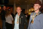 Emil Jepsen, Lars K. Nielsen og Jonas Houmøller fra det guldvindende juniorlandshold ankom onsdag aften den 15. oktober til Kastrup (billederne 001 til 025). Tirsdag den 21. oktober kl. 21.40 ankommer Martin Schaltz, Dennis Bilde og Kåre Gjaldbæk (billederne 026 til 056).