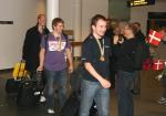 Emil Jepsen, Lars K. Nielsen og Jonas Houmøller fra det guldvindende juniorlandshold ankom onsdag aften den 15. oktober til Kastrup (billederne 001 til 025). Tirsdag den 21. oktober kl. 21.40 ankommer Martin Schaltz, Dennis Bilde og Kåre Gjaldbæk (billederne 026 til 056).