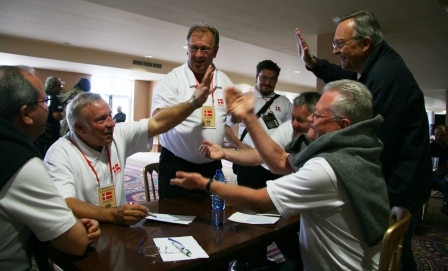 Seniorerne var det helt store lyspunkt. Jeg talte inden kampen med Knud-Aage Boesgaard og spurgte ham om han havde væres i Dublin før. Det havde han for 42 år siden! Dengang debuterede han på juniorlandsholdet med Peter Schaltz som makker og de vandt Junior-EM! Nu spiller de begge på seniorholdet,og modstanderne var Finland. Begge borde gjorde det strålende og resultatet 25-2 betyder at Danmark ligger på en delt førsteplads! Fem megagode spil med scorerne 11, 10, 16, 10 og 11 imp skæpppede godt i kassen.