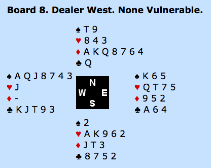 Mod Tylvadbrødrene åbnede nordmanden 4sp og fulgte op med 5sp, formentlig ment som ofring, oven på 5ru. Det blev fair nok doblet af syd, og de kunne se vest købe makker med guldkorten spar konge og klør es, så man ikke kunne stoppe dem fra at tage 12 stik og notere +750.