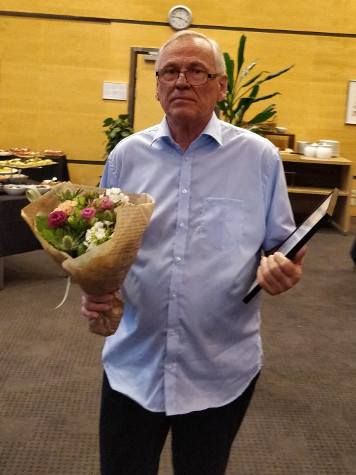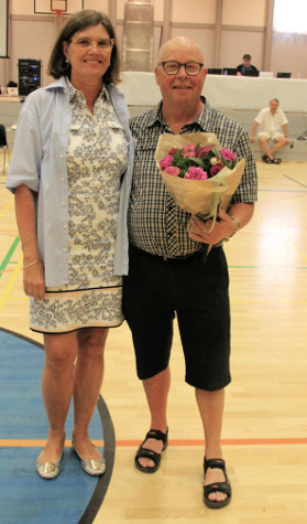 Poul Bo fik sølvnålen sat fast på skjorten af Charlotte og hun overrakte diplom og blomster.