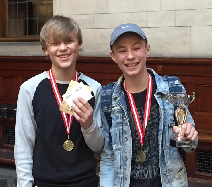De nykårede københavnsmestre i skolebridge, Daniel Ahlgren og Andreas Muff fra Hyltebjerg Skole