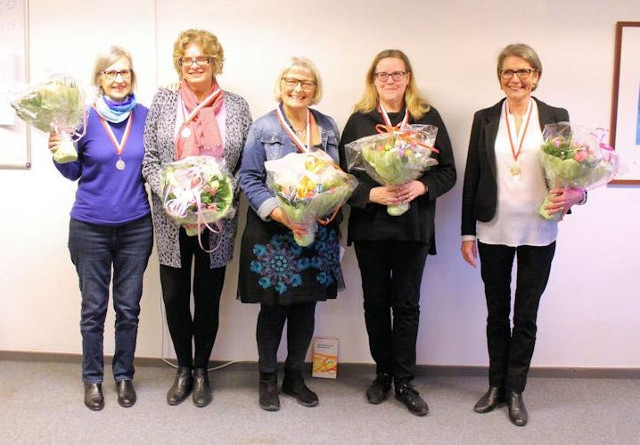 Guldvinderne: Helle Krogh, Bettina Kalkerup, Ketty Jepsen, Kirsten Vesth-Hansen, Anne Marie Fröhlich (og Nadia Bekkouche - ikke på fotoet)