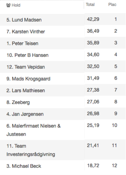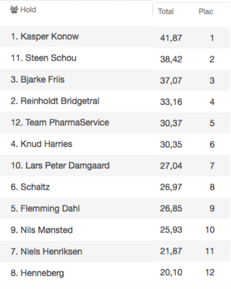 Kasper Konow har lagt sig i spidsen med seniorerne fra Steen Schou i hælene. De forsvarende mestre ligger under middel på en 8.-plads, men der er masser af kampe i nu, hvor der kan skaffes KP til en slutspilsplads.