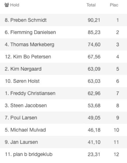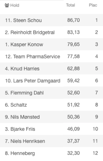 Også i København blev der spillet et par spændende opgør. Bl.a. var der en gentagelse af sidste års finale, da Schaltz mødte Reinholdt Bridge. Schaltz vandt finalen i april måned, men denne gang var det stik modsat med Reinholdt Bridge, der så ud til at være i topform. De vandt nemlig med 75 IMPs over de forsvarende danmarksmestre, hvilket gav dem 18,92 KP.
