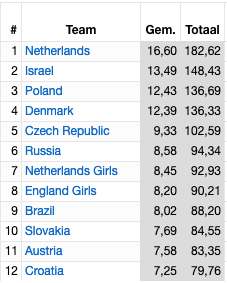 Sidste uge bragte vi her på siden en optakt til det, der skulle gå hen og blive et af de største danske resultater i juniorbridge i nyere tid. Juniorholdet tog søndag den 24. marts afsted mod Amsterdam, hvor spillet startede mandag. De første to dage skulle det indledende gruppespil spilles. Grupperne så således ud: