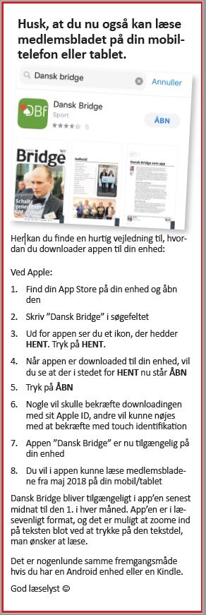 Du kan nu finde jubilæumsnummeret af Dansk Bridge under medlemsinfo her eller på vores Dansk Bridge app.