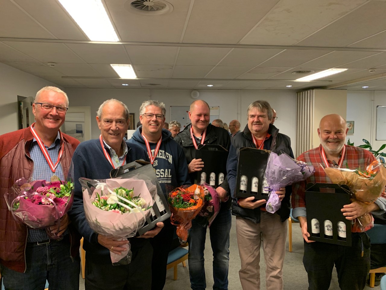 Guldvinderne fik blomster, vin og medaljer efter sejren i A-finalen i Østsjællands Bridgecenter: