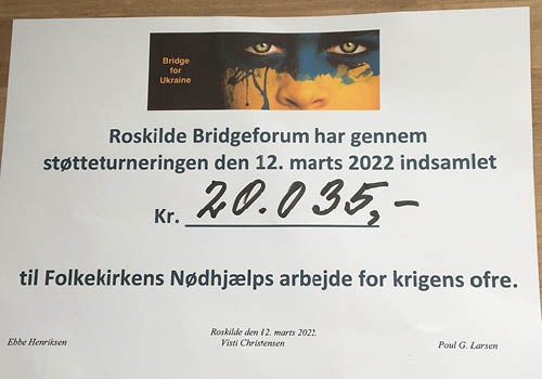 Bridgen har i løbet af weekenden indsamlet knap 45.000 kroner, som går direkte til Folkekirkens Nødhjælps arbejde for ukrainske ofre.