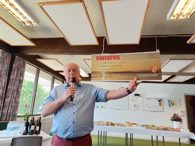 Fra kommunen fik bridgeklubben en gavecheck på 7.500 kr.: