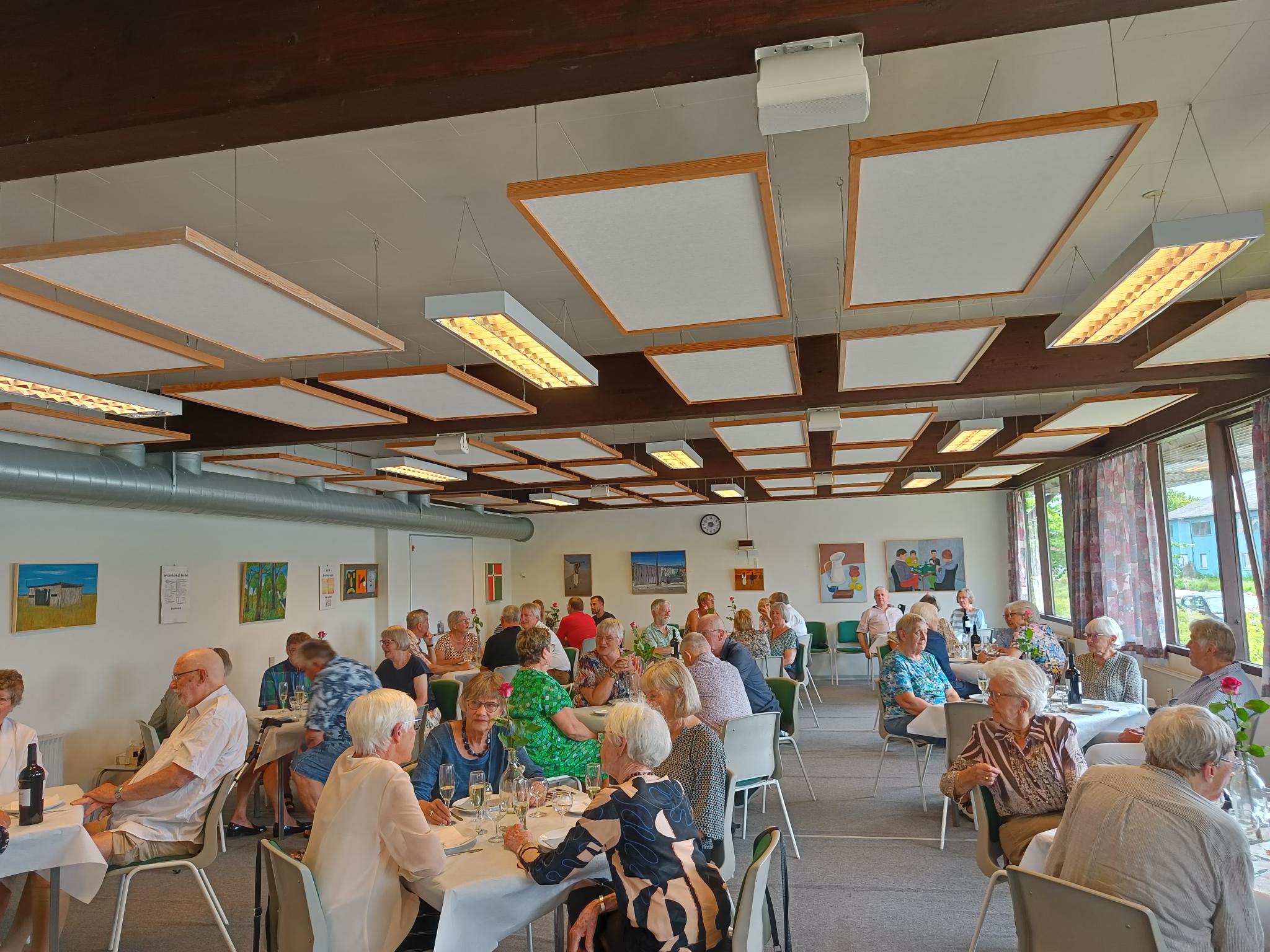 Der blev budt velkommen af formand Jørgen Holm – og herefter gik alle ombord i pindemadder og dejlige vine. Guldborgsund kommune var bl.a. repræsenteret ved medlem af Økonomiudvalget og næstformand i Landdistrikter, Kultur og Fritidsudvalget, Katrine Burmann, som holdt en flot og vedkommende tale for klubben. Til stede var også formanden for Folkeoplysningsudvalget, Lene Madegaard. Fra kommunen modtog klubben en gavecheck på 7.500 kr. Også distrikt Storstrøm havde lagt vejen forbi.