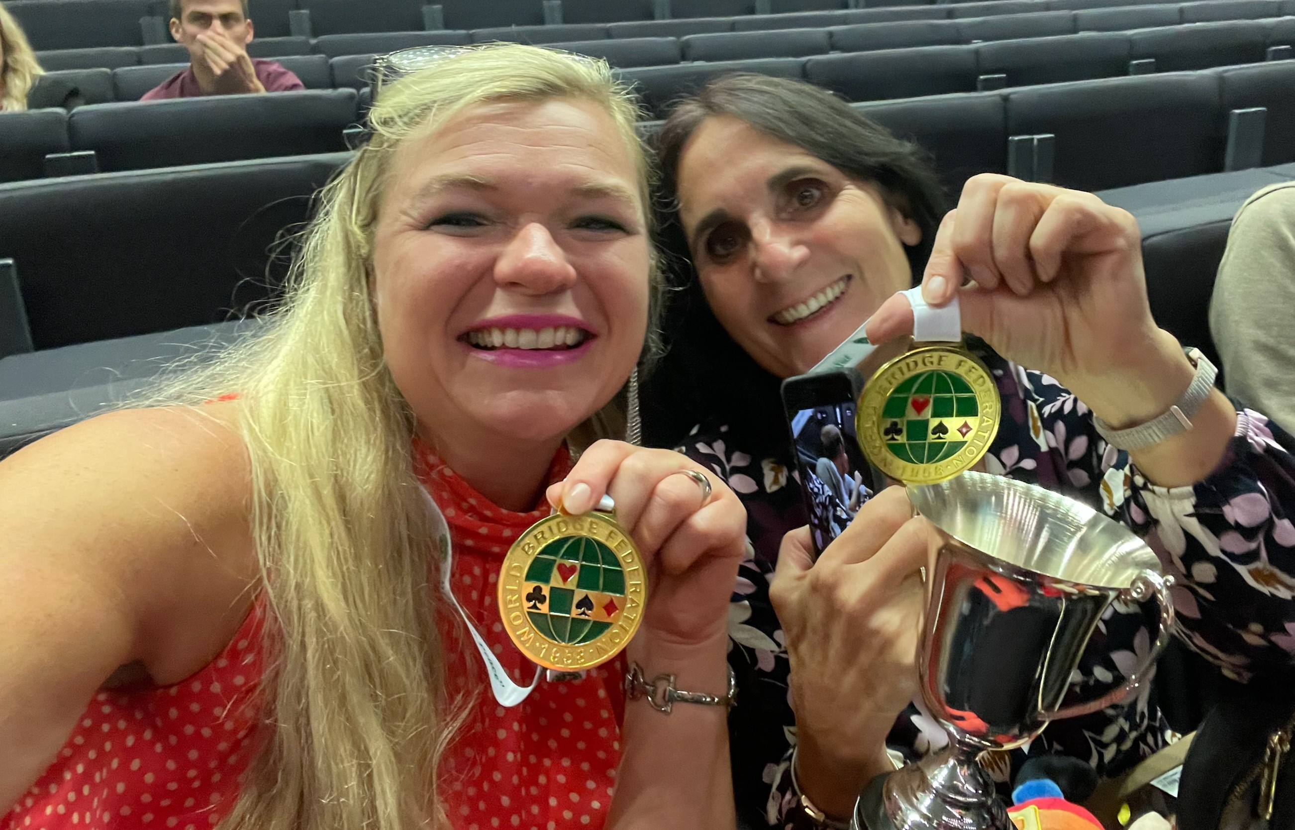 Christina Lund Madsen og holdkammerat Daniella von Arnim med guldmedaljerne: