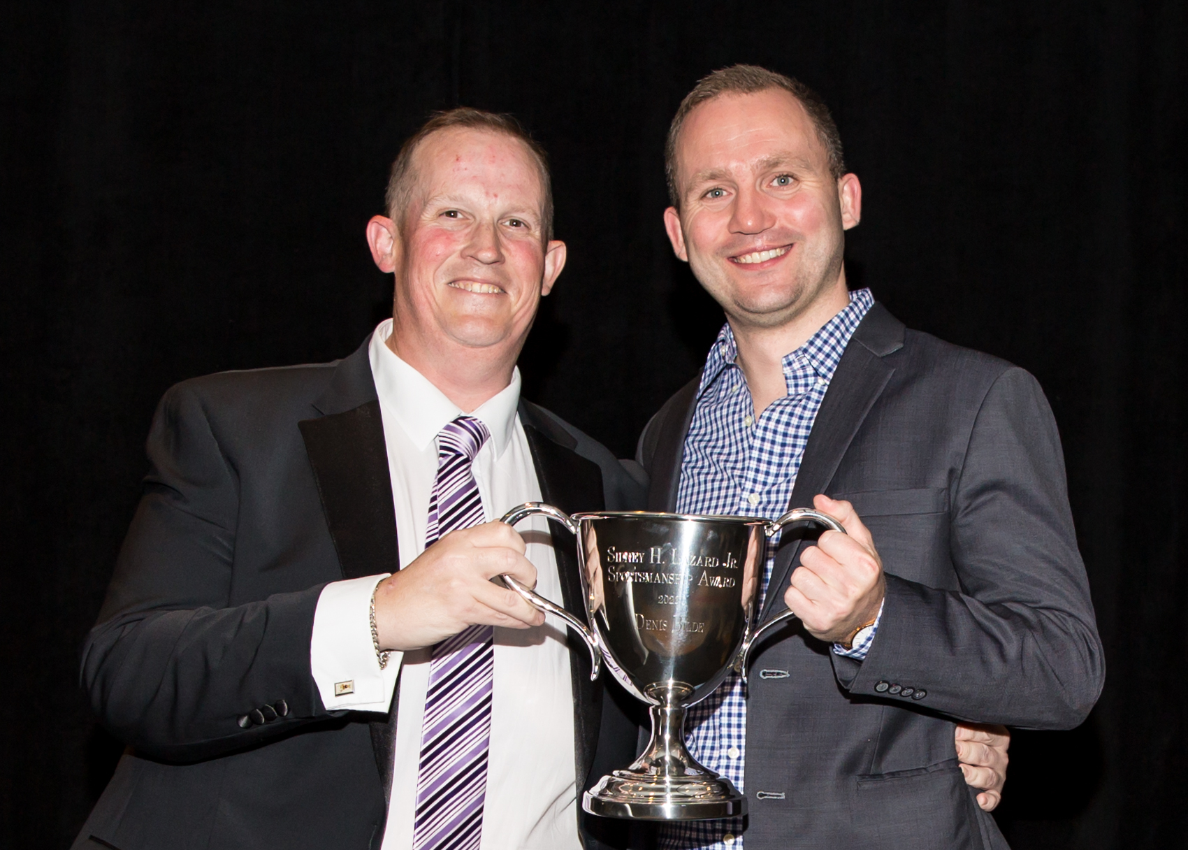 Dennis Bilde har fået overrakt trofæet som vinder af Sidney Lazard Sportsmanship Award. Bilde fik egentlig tildelt prisen i 2020, men trofæet er først blevet overrakt nu på grund af corona.
