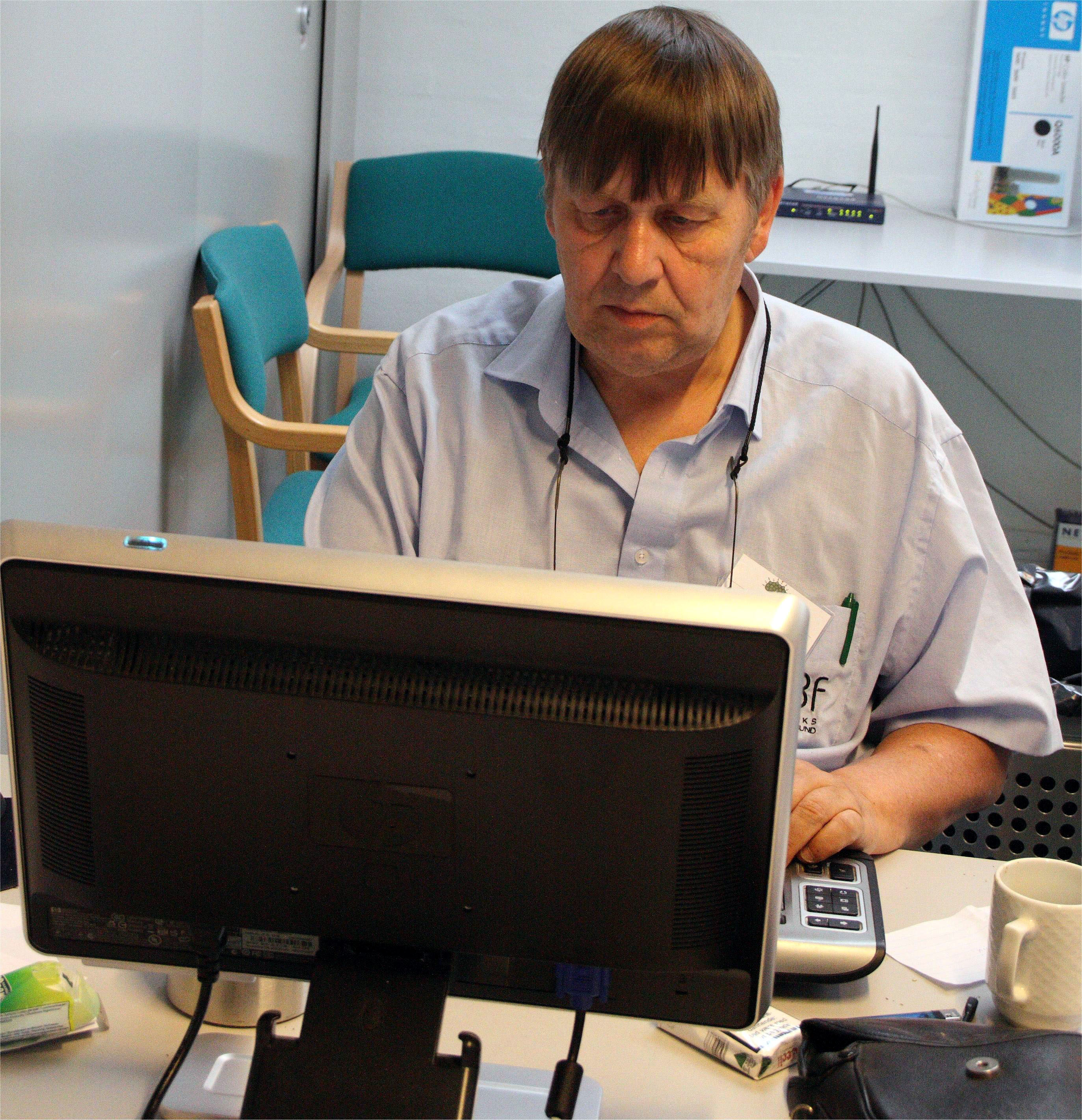 Ib Lundby i gang med et af sine kæreste gøremål: At skrive om bridge. (Foto: Charles)